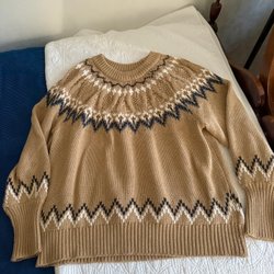 En härlig snyggt stickad ljusbrun/grech tröja, passar M/L