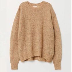 H&M stickad beige tröja offshoulder ( krage ull ylle S M damkläder