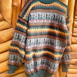 Stickad norsk tröja / ulltröja ylle handstickad hadgjord / vintage retro / L XL