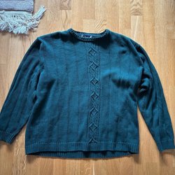 Bay Point Threads grön stickad tröja uppskattas som 42/44, se måtten.