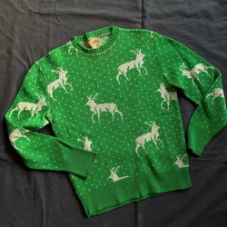 Stickad Ulltröja Renar Hjortar Lusekofta Grön jultröja