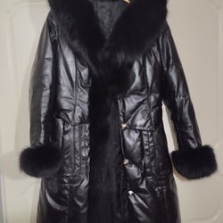 Varm Dunkappa Dunjacka med pälskantad huva Barbara Lebek i storlek 42/44