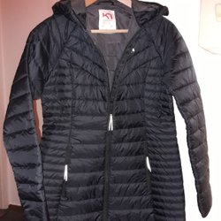 Svart puffer kappa, storlek 4XL