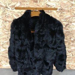 Äkta pälsjacka i svart kanin – strl 10 (EU 38)