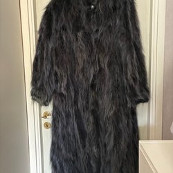 Lång äldre pälskappa,tvättbjörn/bisam