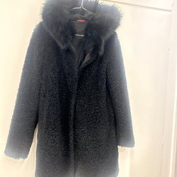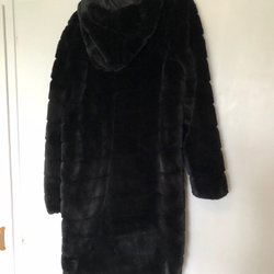 Fuskpäls med luva i storlek 42