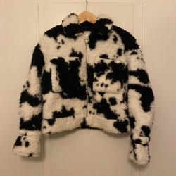 Ko-mönstrad jacka från Topshop i faux fur / pile /teddy tyg