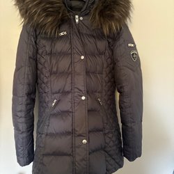 Parajumpers svart dunjacka med pälskrage, storlek Small