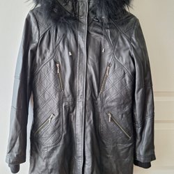 Oanvänd. Fuskpäls jacka med huva L.
