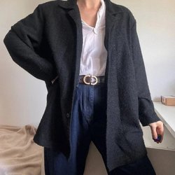 Schwarzes Bouclé-Hemdjacke – Minimalistisk & Elegant