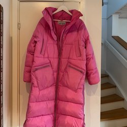 Rosa lång dunjacka, varm och fin!