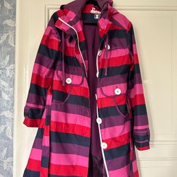 Danefae rosa, lila, röd, marinblå regnkappa, storlek S