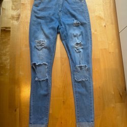 Helt nya denim jeans med slitna detaljer från BikBok med super stretch stl XL