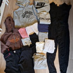 Klädpaket med huvtröjor, jumpsuit och träningsbyxor
