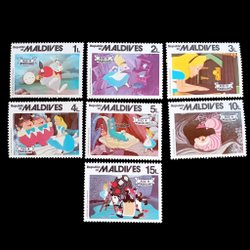 Ostämplade frimärken från Maldiverna Alice I Underlandet Disney