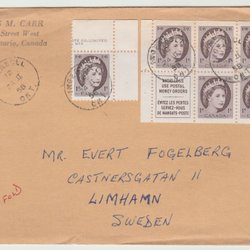 Kanada brev 1958 frankerat med häftesblock