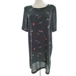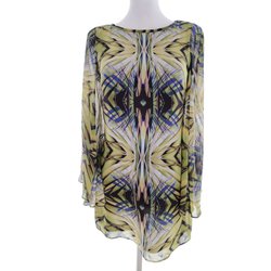 CISO Dam Tunikablus 44 Blå Viskos 100% Lång ärm Växtblad Delad rund hals