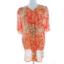 LINDEX Dam Tunikablus knäppt 34 Orange Kort ärm Leopardmönster V-ringning