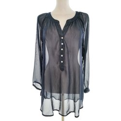 BARFOTA Dam Tunikablus popover M Marinblå Lång ärm Delad rund hals