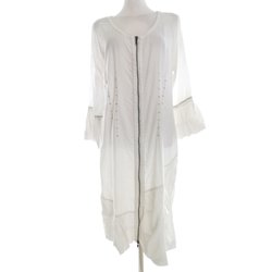 CREAM Dam Stickad tunika M Vit Lång ärm Spetsbroderi Rund urringning