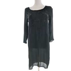 INDISKA Dam Tunikablus S Svart Viskos 100% Lång ärm Pärlor Rund urringning