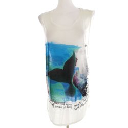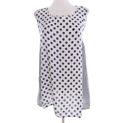 ITALY Dam Tunikablus 42 Vit Lin 100% Ärmlös Prickar Rund urringning