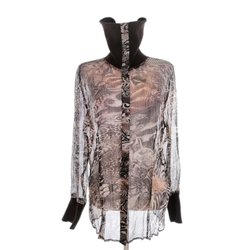 ERFO ORIGINAL Dam Tunikablus knäppt 42 Brun Lång ärm Leopardmönster Polo