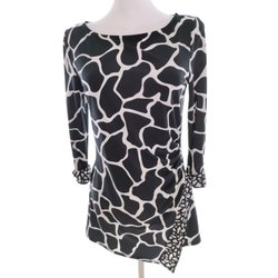 WALLIS Dam Tunikablus 38 Svart 3/4 ärm Leopardmönster Båtringning