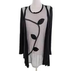 VINTAGE Dam Tunikablus 38 Svart Lång ärm Växtblad Rund urringning