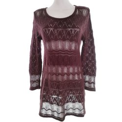 AWEAR Dam Stickad tunika Purpur Lång ärm Virkning Rund urringning