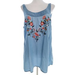 YESSICA Dam Tunikablus 40 Blå Lyocell 100% Ärmlös Broderi U-ringning