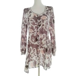 FLASH WOMAN Dam Tunikablus knäppt M Brun Lång ärm Snedställd