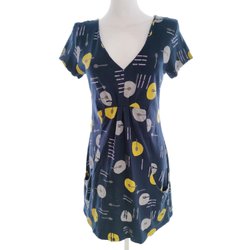 WHITE STUFF Dam Tunikablus 38 Marinblå Bomull 100% Kort ärm Geometrisk