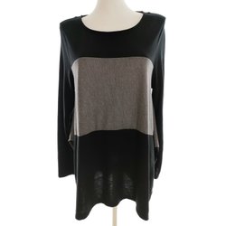 Dam Stickad tunika 40 Grå Lång ärm Rund hals