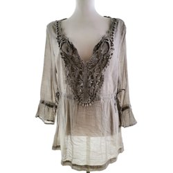 FLASH WOMAN Tunikablus popover L Beige Bomull 100% 3/4 ärm V-ringning