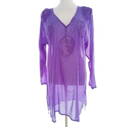 SANDWICH Tunikablus knäppt 36 Lila Bomull 100% Lång ärm Växtblad Rund urringning