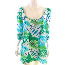 Tunikablus 42 Grön Bomull 100% 3/4 ärm Geometrisk U-ringning