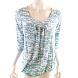 B VINTAGE Tunikablus 34 Blå Viskos 3/4 ärm Ränder V-ringning