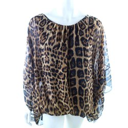 MADE IN ITALY Tunikablus M Brun 3/4 ärm Leopardmönster Båtringning
