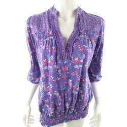 GEORGE Tunikablus 38 Lila Bomull 100% 3/4 ärm Paljetter V-ringning