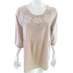 FLASH Tunikablus M Beige Bomull 100% 3/4 ärm Broderi Rund urringning