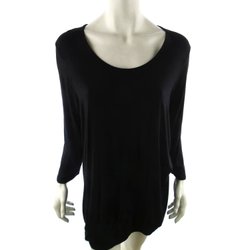 DUNNES STORES Tunikablus 42 Svart Viskos 3/4 ärm Fyrkantig urringning
