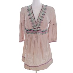 H&M Dam Tunikablus M Beige Bomull 100% 3/4 ärm Broderi V-ringning