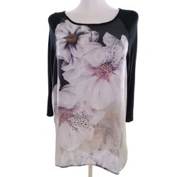 EMILIA Dam Tunikablus XL Svart Viskos Lång ärm Växtblad Rund hals
