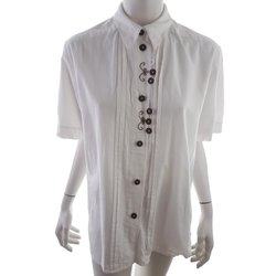 VINTAGE Tunikablus knäppt 42 Vit Bomull Kort ärm