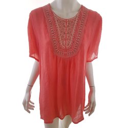 HOUSE DOCTOR Tunikablus M Beige Bomull Kort ärm Paljetter Rund urringning