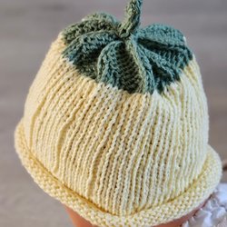 Gul handgjord stickad mössa till prematur bärmössa