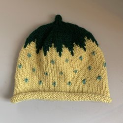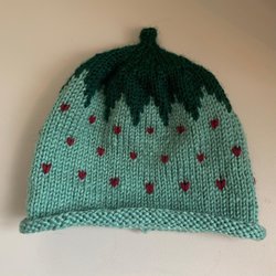 Handstickad bärmössa rosa med gröna prickar 0-6 månader