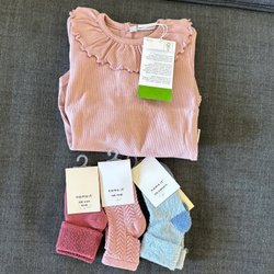 NY Baby kläder storlek 62-68,74-80 Sött set med body, topp och strumpor