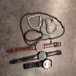 Parti med 3 armbandsur och 4 armband
